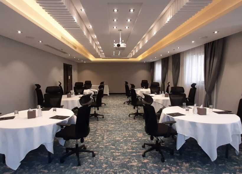The modern meeting room at Iris Hotel accommodates up to 30 guests and provides a comfortable and professional environment equipped with essential facilities for business meetings, workshops, and small events.